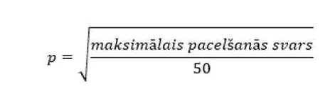 p – gaisa kuģa svara faktors (ar precizitāti – divas zīmes aiz komata), kuru aprēķina, velkot kvadrātsakni no dalījuma, ko iegūst, gaisa kuģa maksimāli pieļaujamās pacelšanās masas metrisko tonnu skaitu, kas minēts lidojuma derīguma sertifikātā, lidojuma instrukcijā vai citā līdzīgā oficiālā dokumentā, dalot ar 50: