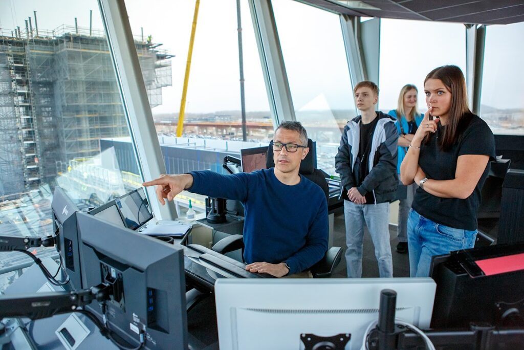 Ēnotājiem šogad bija unikāla iespēja vērot dispečeru darbu gaisa satiksmes vadības tornī un lidojumu vadības centrā, iztaujāt viņus, redzēt, kā dispečeri mācās un paaugstina savu kvalifikāciju, izmantojot mācību simulatoru.